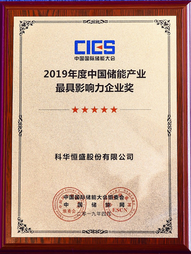 > 2019年度中国储能产业最具影响力企业奖