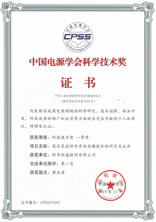 中国电源学会科技进步奖 一等奖